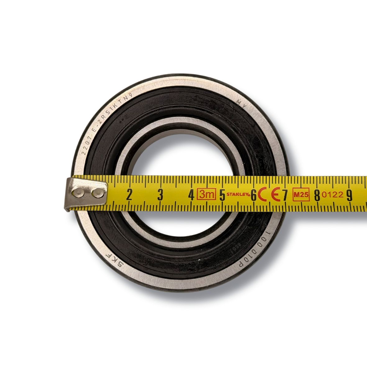 Beim in dieser Messanleitung gezeigten Lager ist seitlich eine Kennzeichnung wie E-2RS1KTN9 erkennbar. Diese Bezeichnung kann bereits wichtige Hinweise auf die Ausführung des Lagers geben und die Identifikation erleichtern.